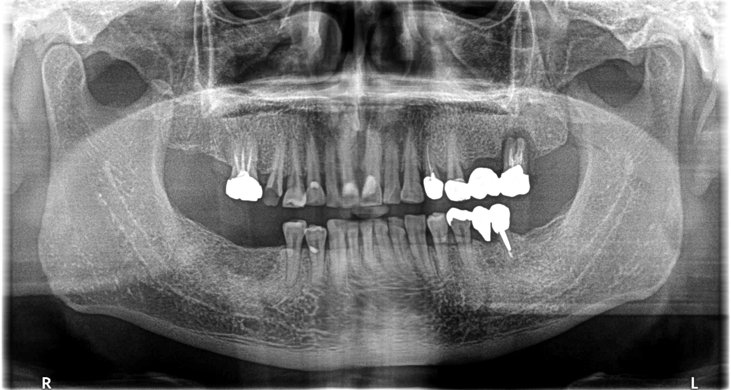 主訴は被せ物の脱離であったが、診査の結果、現状抜歯を余儀なくされる歯も見受けられた。
