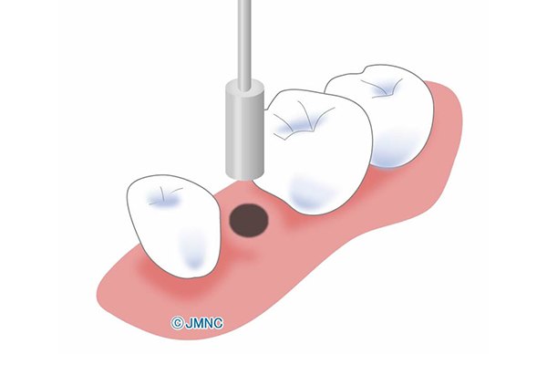 ソケットリフトは、抜歯後の穴から骨補てん剤を入れ、新たな骨を形成する術式です。サイナスリフトに比べて増やせる骨の量は少ないのですが、身体への負担が小さいというメリットがあります。