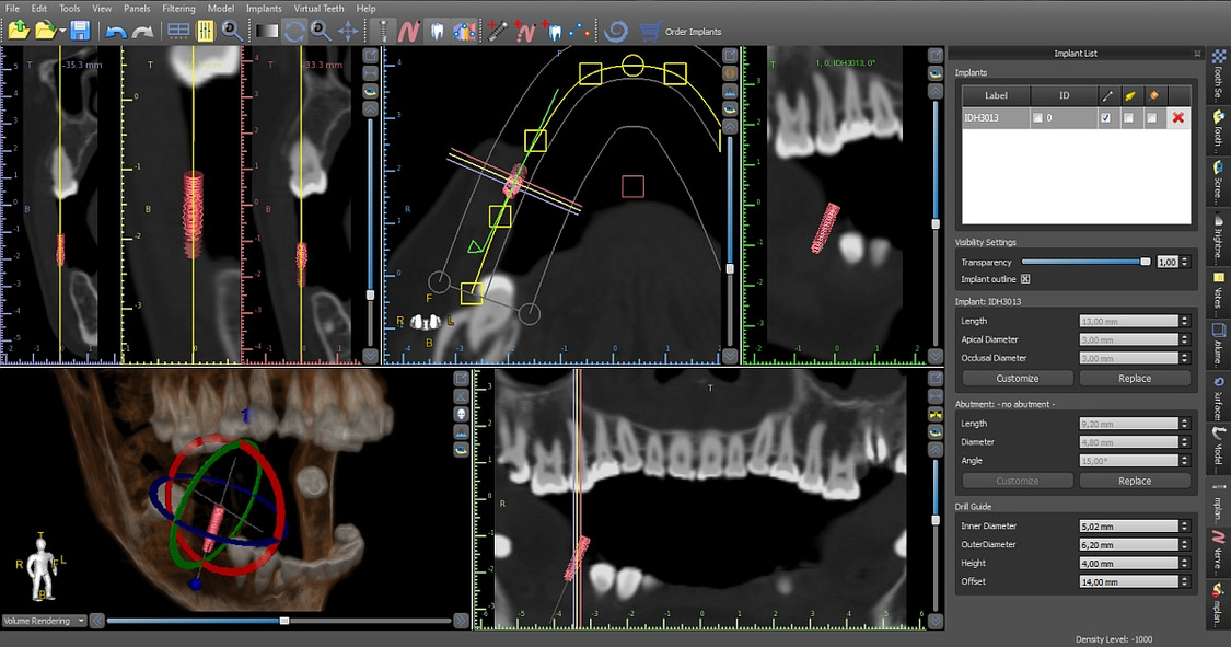 適切なサイズのインプラントをどの位置に、どの角度で、どれくらいの深さまで挿入するかを決定し、神経や血管を傷つけることなく、安全な手術ができるようになります。