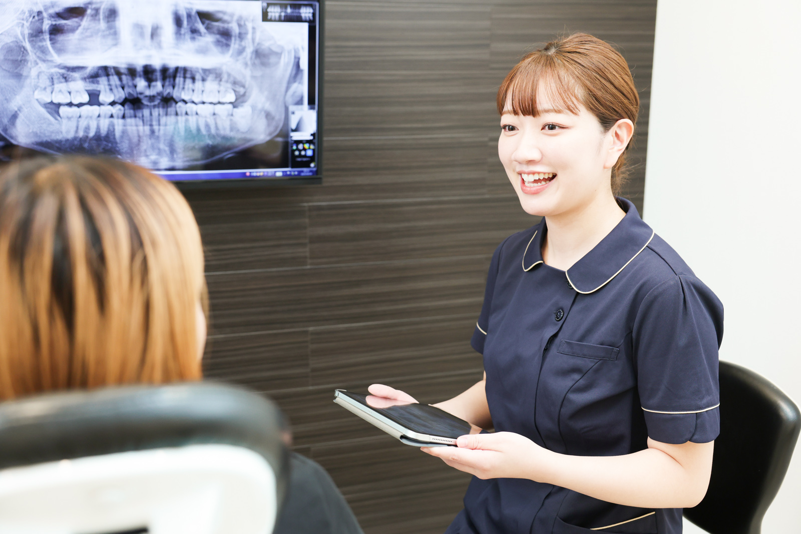 当院には院内技工士は常駐しておりませんが、提携している歯科技工所が医院と同じビルに入っており、ほぼ「院内技工士」といえるほど密な連携体制を築いています。